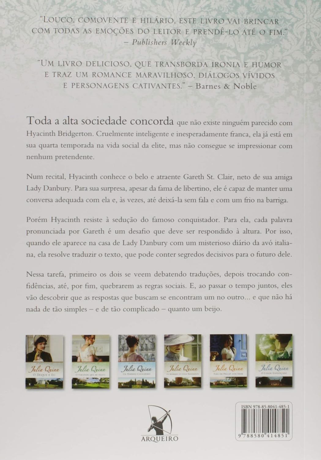 Porém Hyacinth resiste à sedução do famoso conquistador. Para ela, cada palavra pronunciada por Gareth é um desafio que deve ser respondido à altura. Por isso, quando ele aparece na casa de Lady Danbury com um misterioso diário da avó italiana, ela resolve traduzir o texto, que pode conter segredos decisivos para o futuro dele.